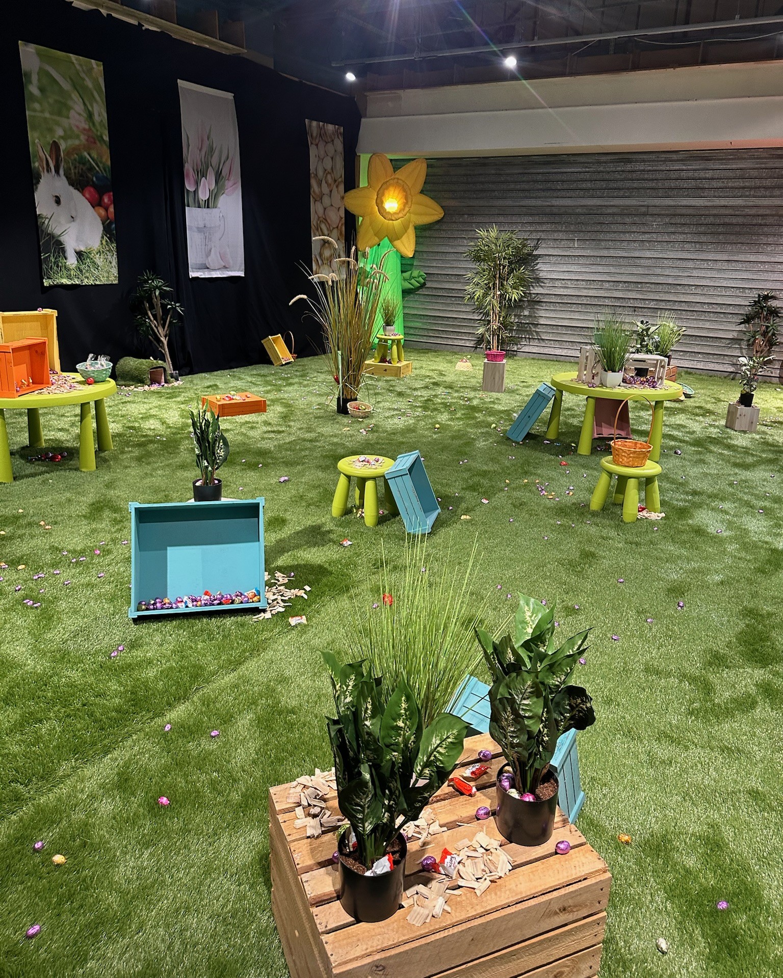 À l’occasion de Pâques, notre team a organisé une animation inédite à l’intérieur du centre commercial Les Éléis, une chasse aux œufs dans un champ ! Entre parcours de jeu, décor thématisé et présence de la mascotte de pâques, petits et grands ont pu profiter d’un moment ludique et convivial.