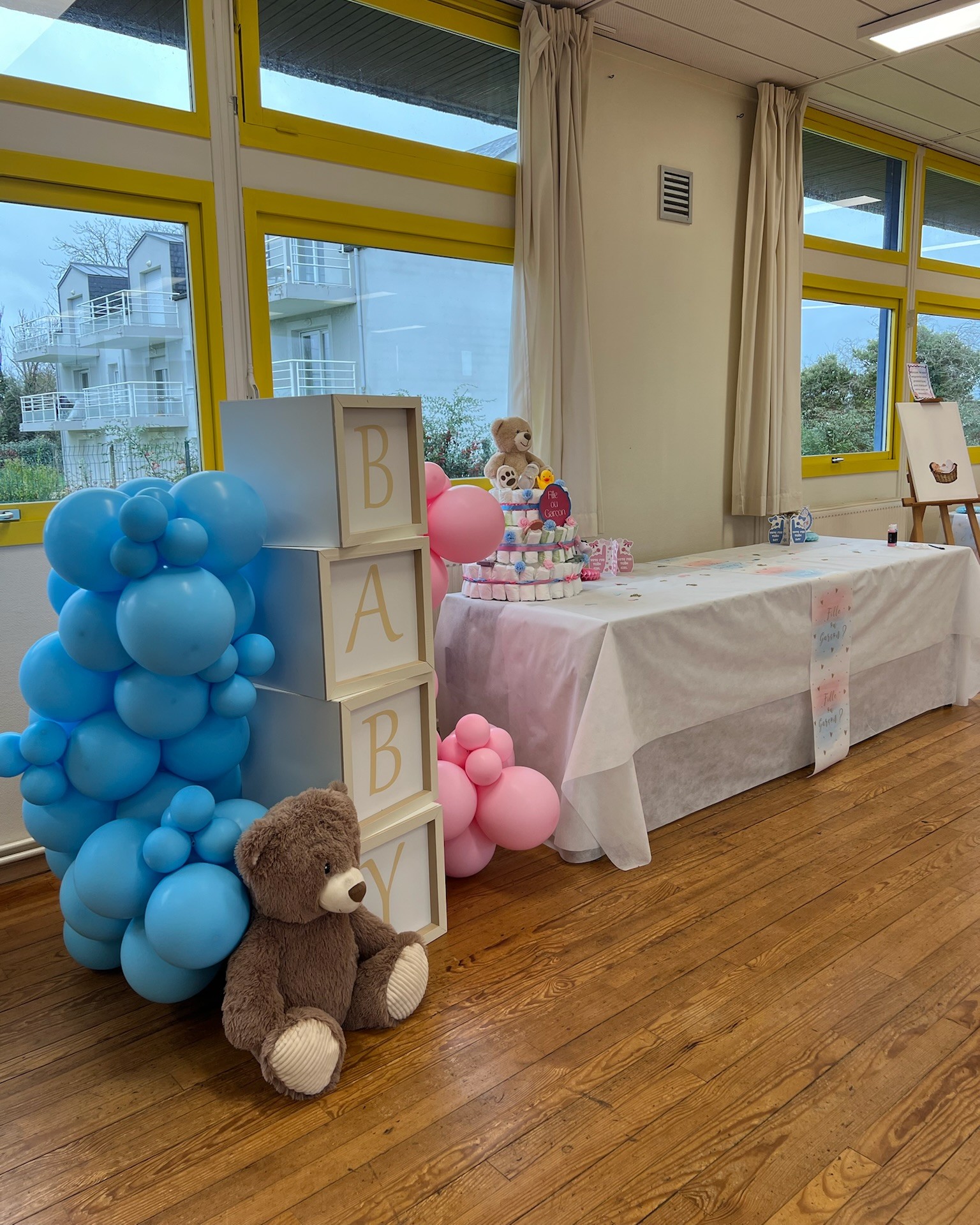 - Mise en place des animations (borne photo, jeux de pronostics, livre d’or, gâteau de couches, révélation du genre)