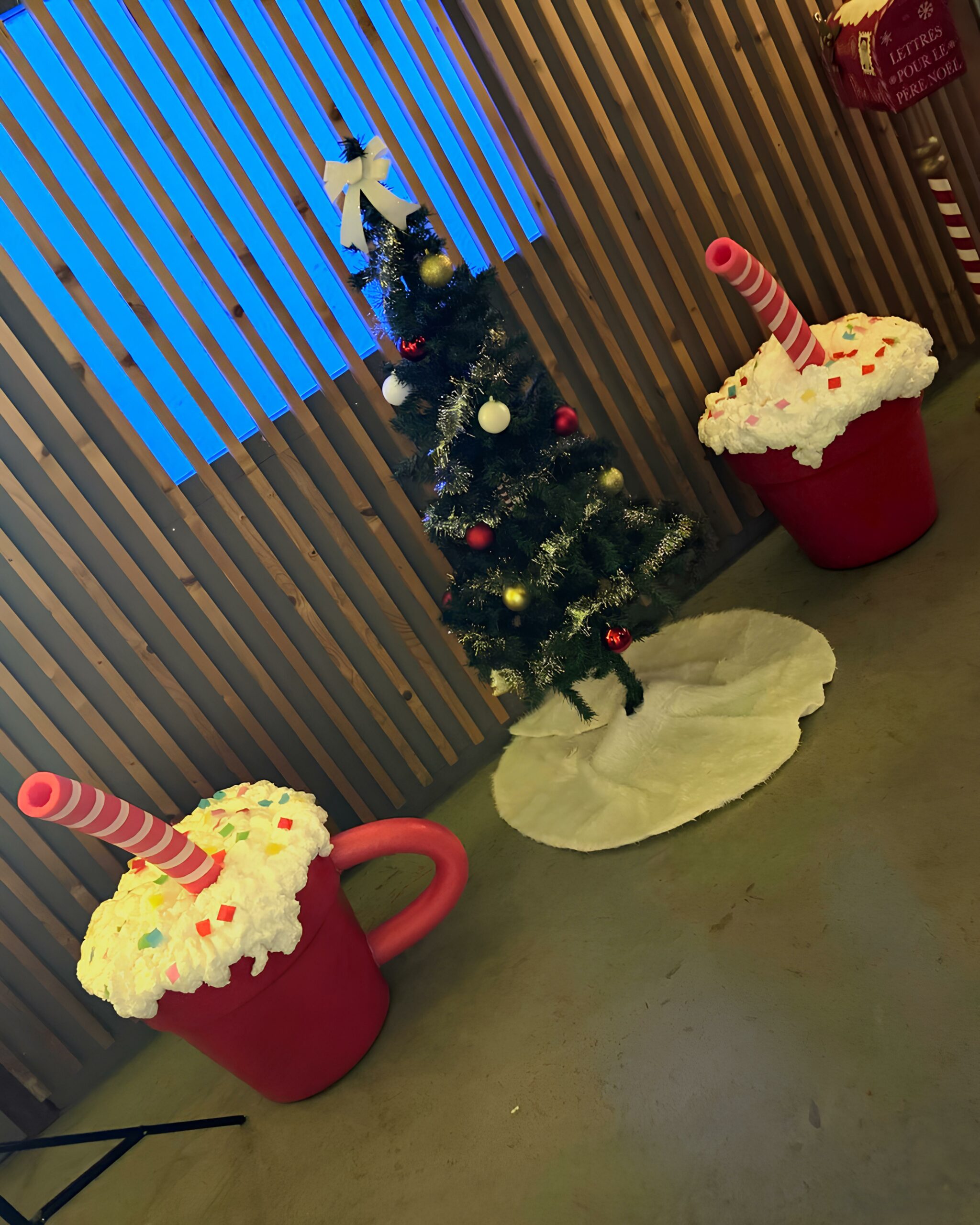 • Décoration complète de l’espace (sapins, décors, cadeaux)